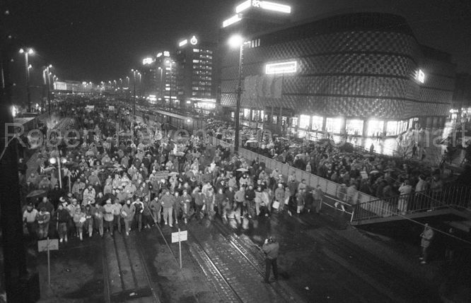 Bei der Montagsdemonstration am 27. November 1989 versammeln sich 200.000 Menschen in der Leipziger Innenstadt. Neben den Forderungen nach Meinungsfreiheit, freien Wahlen und demokratischen Reformen, wird der Ruf "Deutschland einig Vaterland!" immer lauter. Auch auf anderen Demonstration in anderen Städten der DDR, spielt die Frage um die Einheit Deutschlands eine zentrale Rolle. In Halle und Dresden demonstrieren an diesem Abend ca. 50.000 Menschen. In Schwerin und Wismar sind es ca. 10.000.
