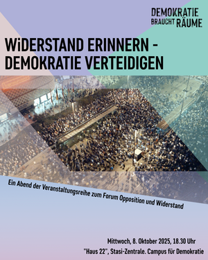 Wir erinnern an die Montagsdemonstration am 9. Oktober 1989 in Leipzig, die einen entscheidenden Moment im Verlauf der Friedlichen Revolution darstellte. Wir diskutieren über unseren Umgang mit der Geschichte von Opposition und Widerstand in der DDR und warum wir einen entsprechenden Lern- und Erinnerungsort brauchen. U. a. mit der SED-Opferbeauftragten beim Deutschen Bundestag Evelyn Zupke.